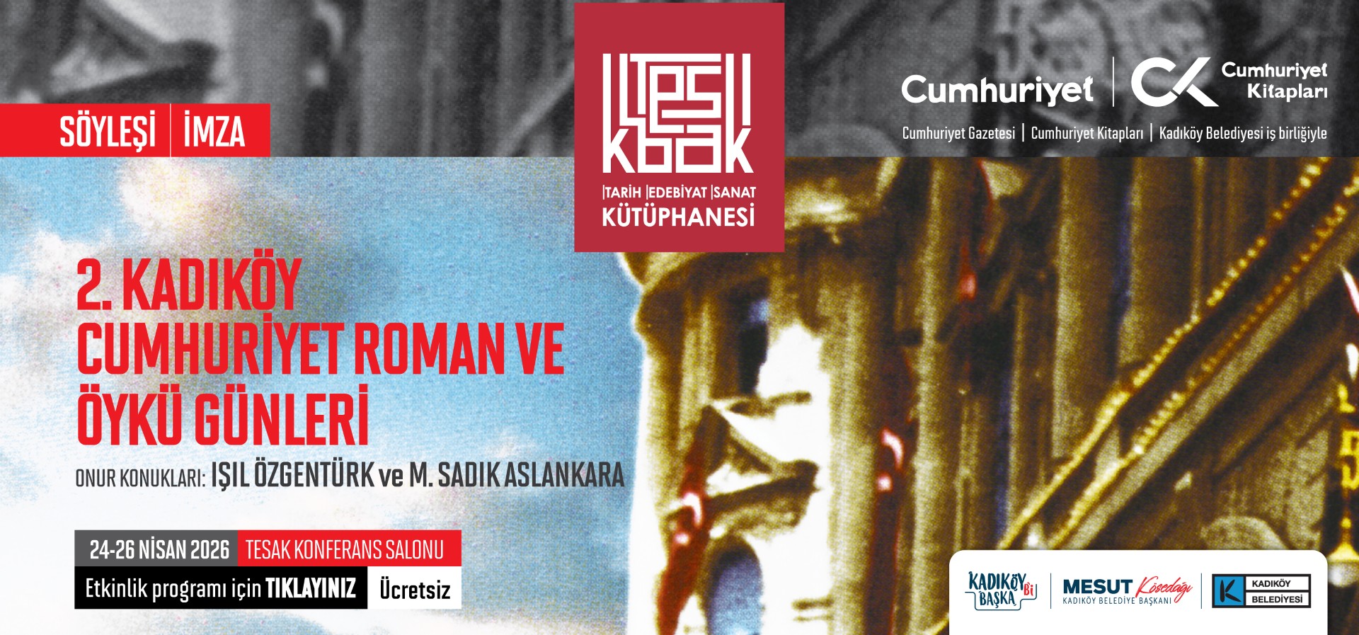 2. KADIKÖY-CUMHURİYET ÖYKÜ VE ROMAN GÜNLERİ (14.00) Devamını Oku...Kadıköy’de Edebiyat Buluşması Başlıyor! Cumhuriyet Gazetesi, Cumhuriyet Kitapları ve Kadıköy Belediyesi iş birliğiyle düzenlenen “Kadıköy Cumhuriyet Roman ve Öykü Günleri”, bu yıl ikinci kez edebiyatseverlerle buluşuyor.